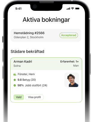 Verifierade städare. Inga abonnemang. Full kontroll i appen.